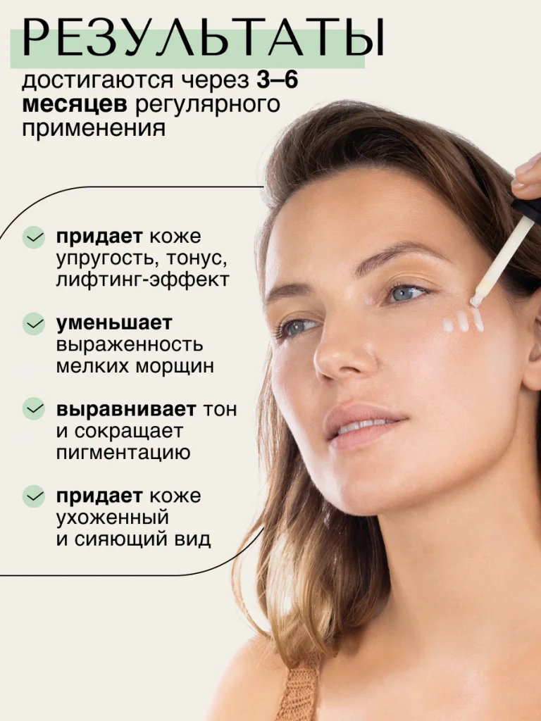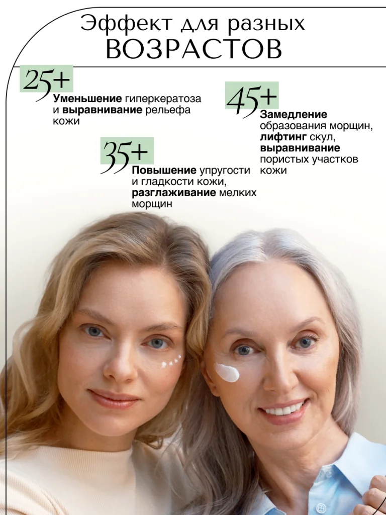 Возрастная кожа истощается и не может самовосполнять себя необходимыми ей веществами, а также удерживать компоненты. Коррекция возможна только при использовании антивозрастного компонента в рабочей дозировке два раза в сутки.