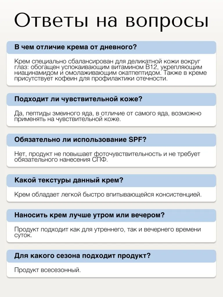 Антивозрастной крем для кожи вокруг глаз с пептидом змеиного яда