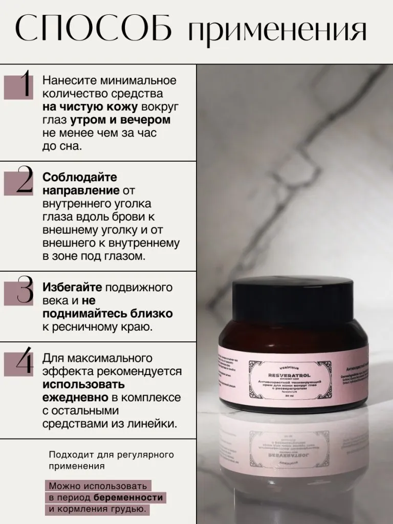 Антивозрастной тонизирующий крем для кожи вокруг глаз с ресвератролом