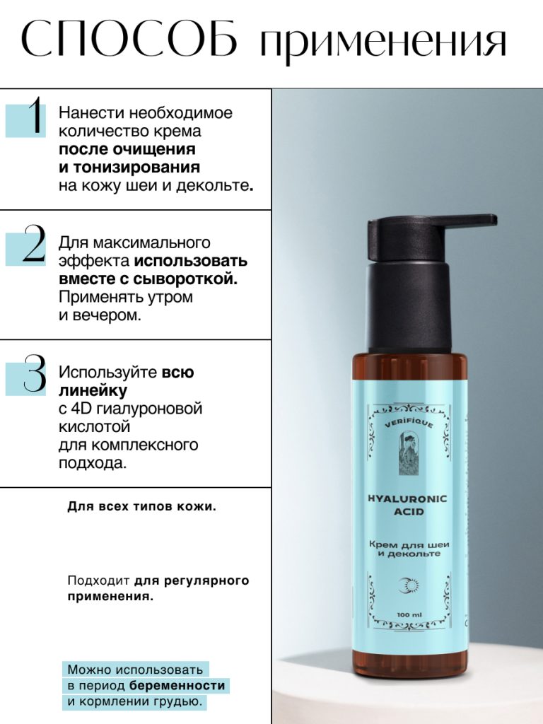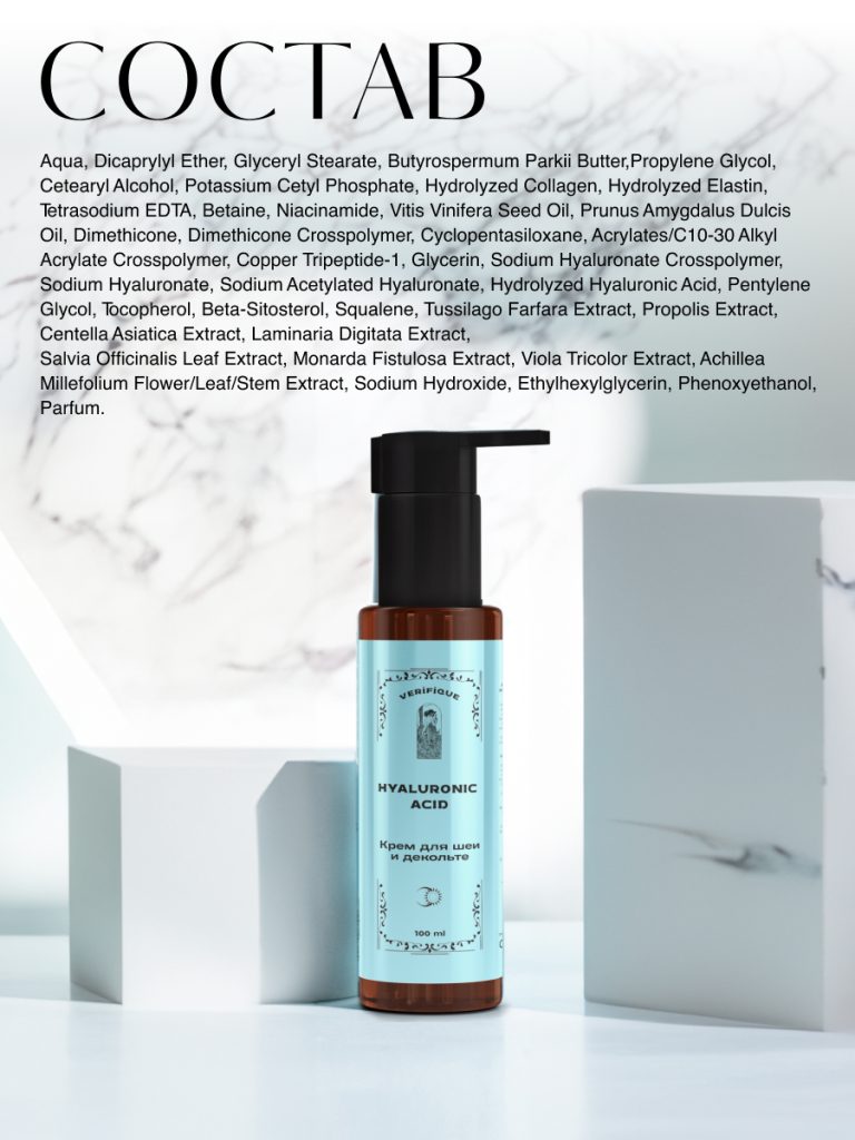 Антивозрастной увлажняющий лифтинг-крем для шеи и декольте с 4D гиалуроновой кислотой