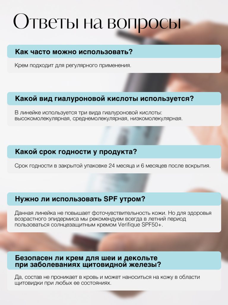 Потребности клеток ткани в дневное и ночное время суток весьма различны, именно поэтому ночные и дневные средства Verifique отличаются не только консистенциями, но и составом, а также сочетаниями компонентов.