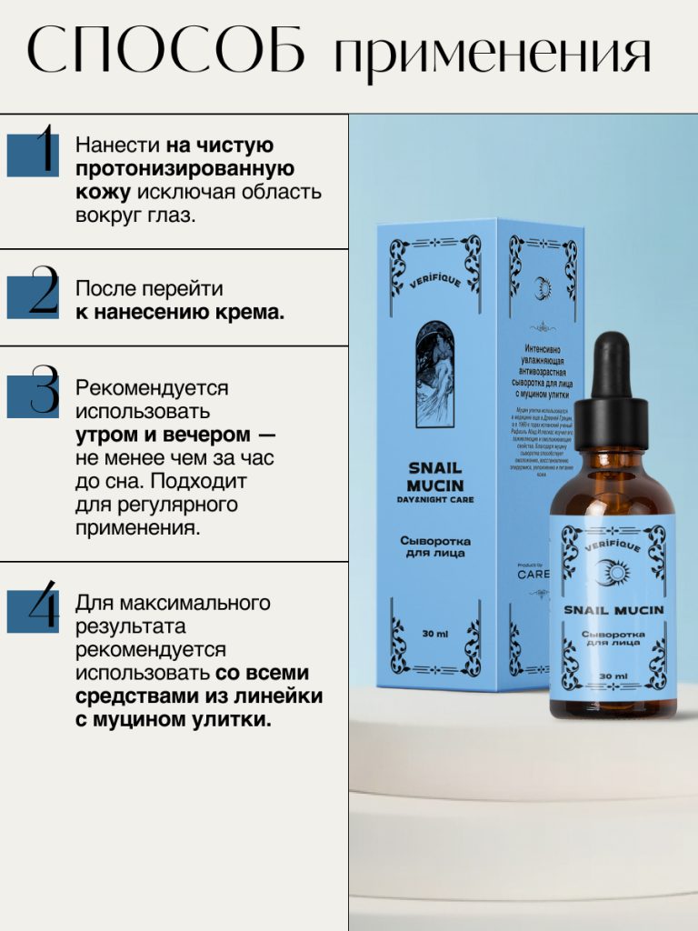 Интенсивно увлажняющая антивозрастная сыворотка для лица с муцином улитки
