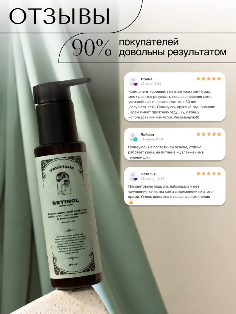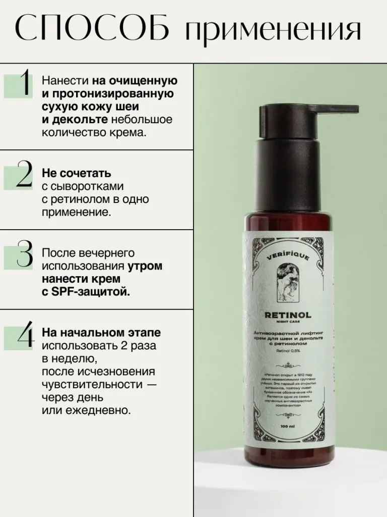 Антивозрастной лифтинг крем для шеи и декольте с ретинолом 0,5%
