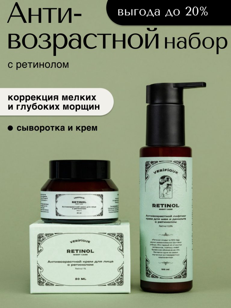 Набор антивозрастных кремов от морщин с ретинолом для лица, шеи и декольте - VERIFIQUE