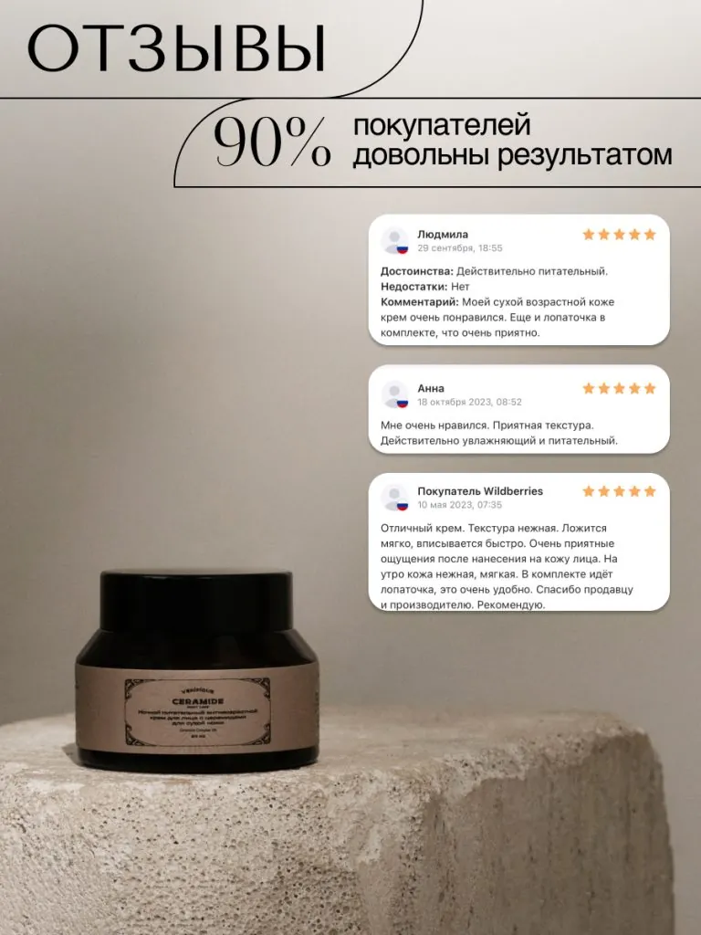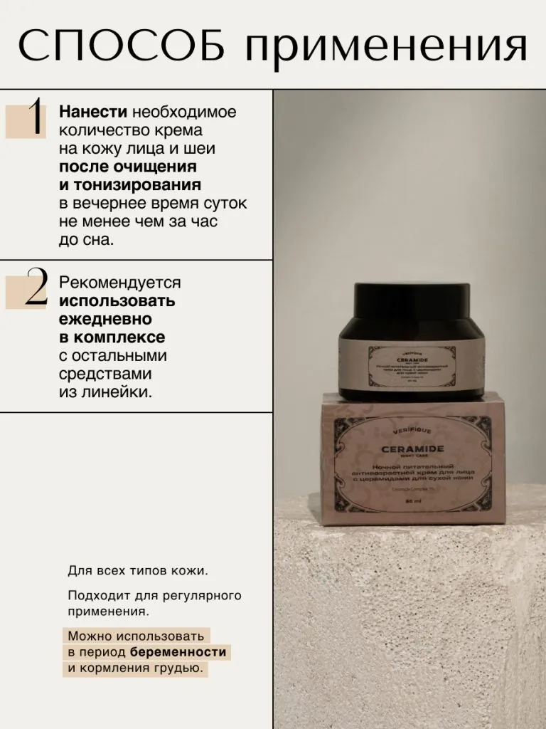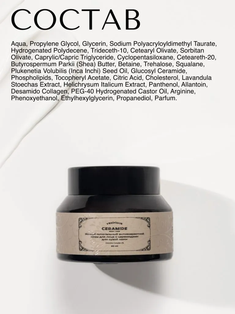 Ночной питательный антивозрастной крем для лица с церамидами для сухой кожи