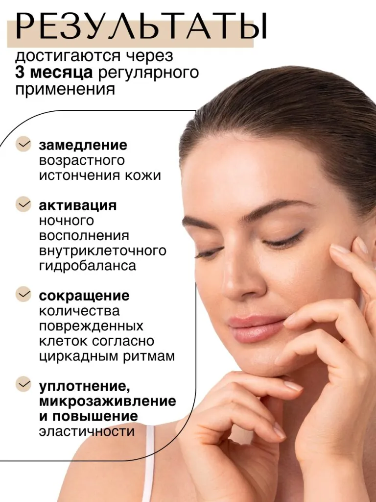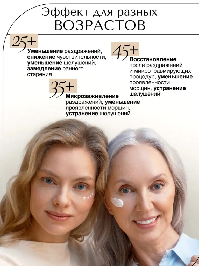 Возрастная кожа истощается и не может самовосполнять себя необходимыми ей веществами, а также удерживать компоненты. Коррекция возможна только при использовании антивозрастного компонента в рабочей дозировке два раза в сутки.