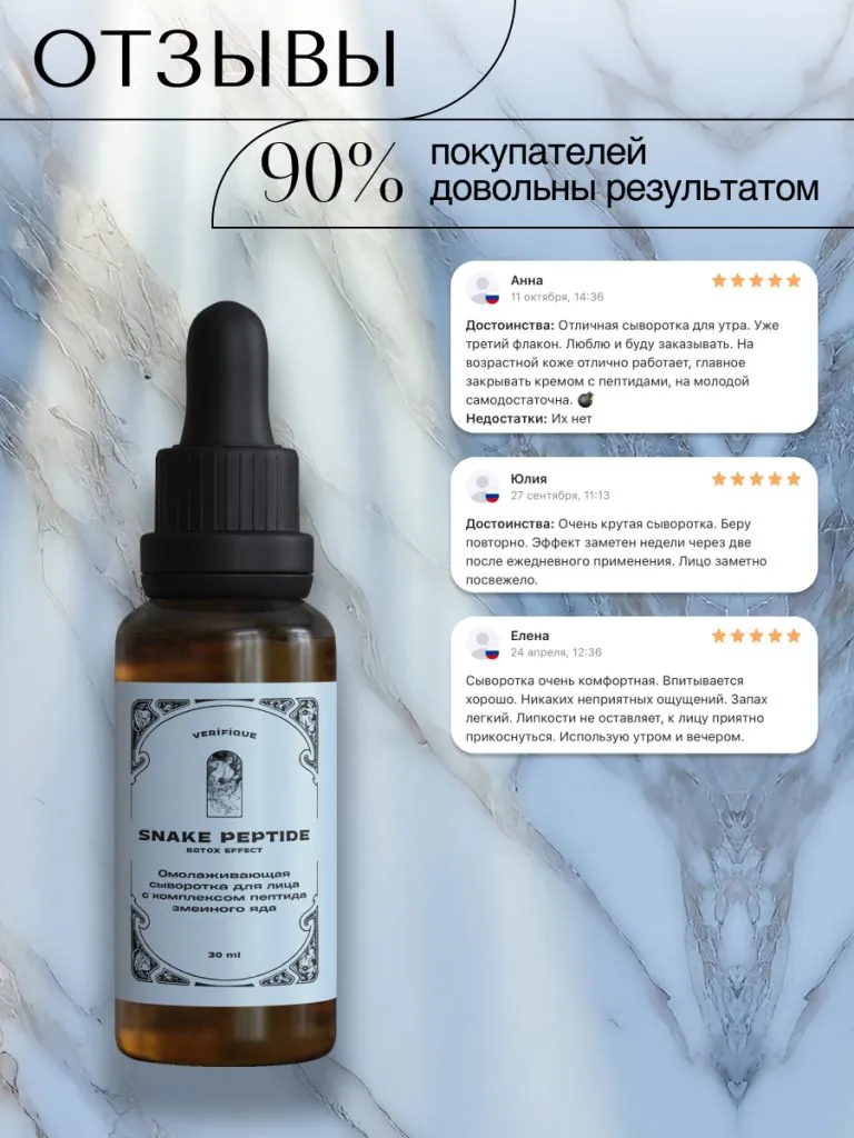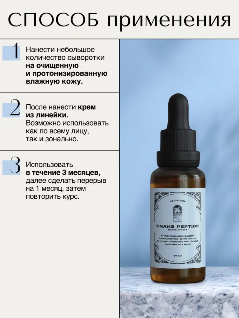Омолаживающая сыворотка для лица c комплексом пептида змеиного яда
