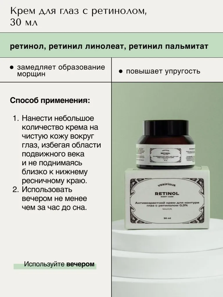 1. Антивозрастной крем для контура глаз с ретинолом 0,3%, 30 мл.