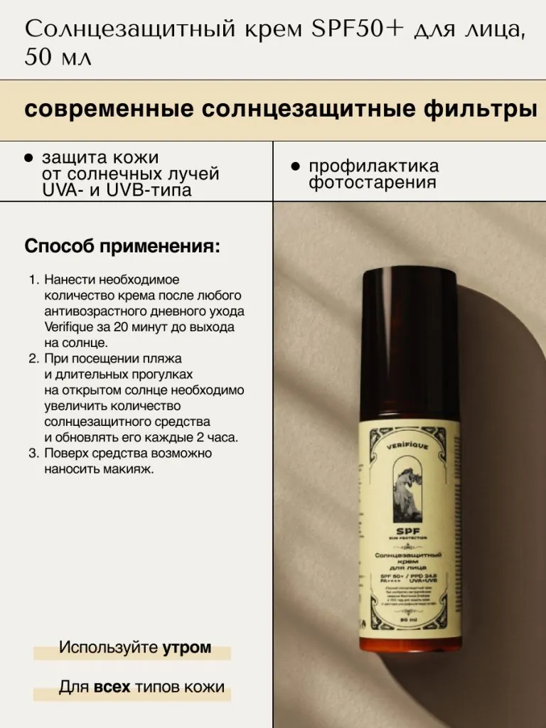 2. Солнцезащитный крем SPF 50+ для лица, 50 мл.