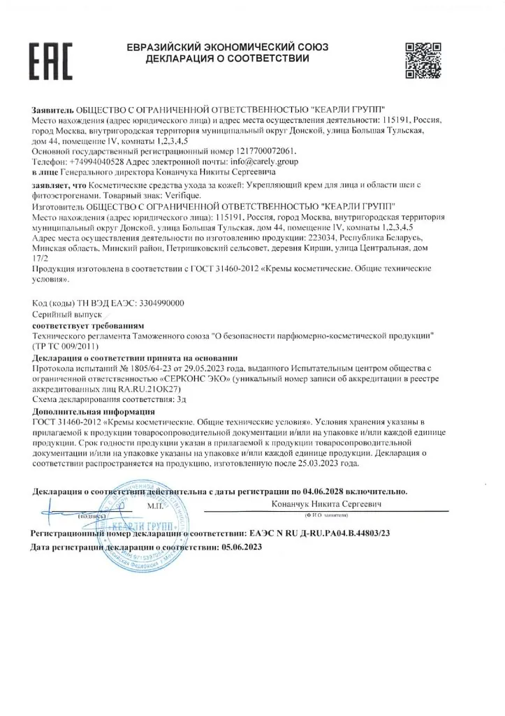 Укрепляющий крем для лица и области шеи с фитоэстрогенами