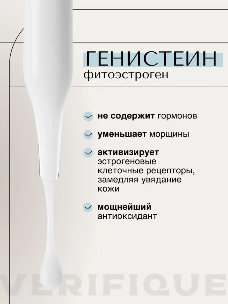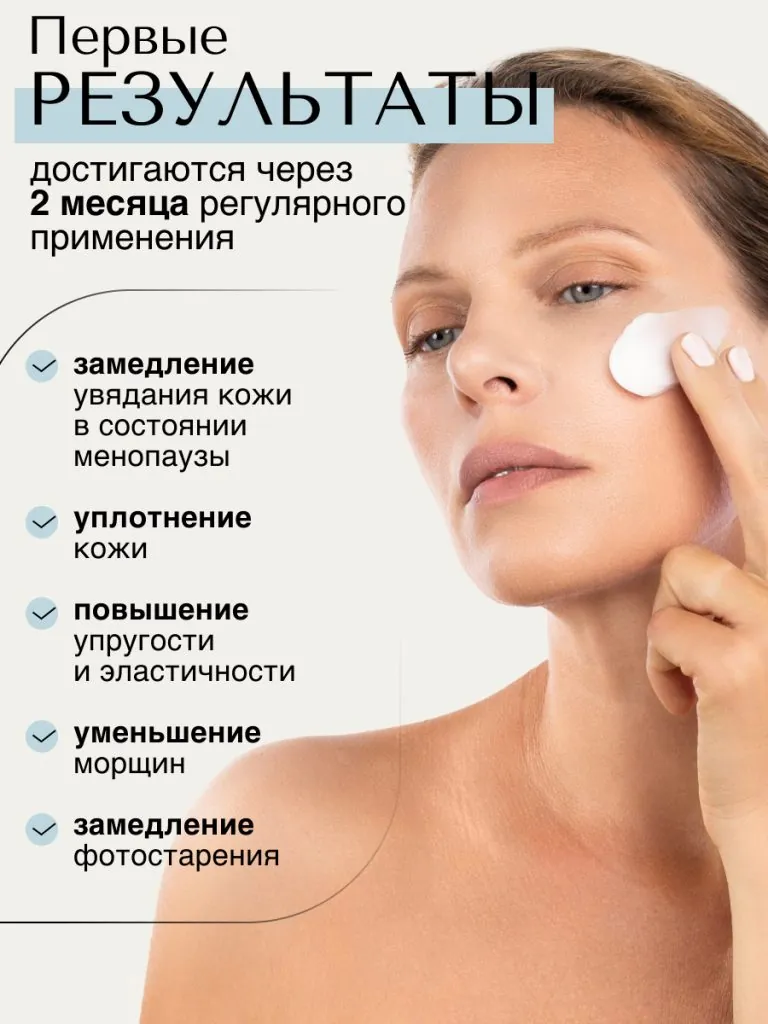 Крем разработан специально для возрастной кожи в период выраженного увядания. За счет растительного генистеина он поддерживает кожу в период вынужденной или возрастной менопаузы. Крем способствует повышению эластичности кожи благодаря входящему в состав гидролизованному коллагену. Сок алоэ и зеленый чай глубоко увлажняют и обеспечивают антиоксидантную защиту. Масла ши, авокадо и миндаля питают возрастную кожу. В результате контуры лица становятся более четкими, замедляется образование морщин, предотвращается фотостарение.