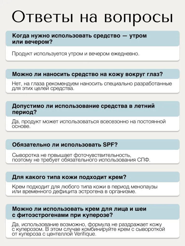 Потребности клеток ткани в дневное и ночное время суток весьма различны, именно поэтому ночные и дневные средства Verifique отличаются не только консистенциями, но и составом, а также сочетаниями компонентов.