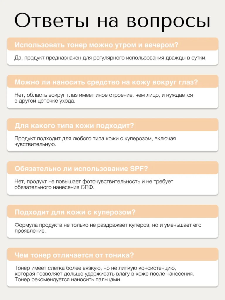 Экстракты листьев зеленого чая, центеллы азиатской и конского каштана способствуют повышению стрессоустойчивости капилляров и нормализации периферического кровообращения в коже. Гиалуронат натрия, гидролизованный коллаген и рибоза повышают эластичность эпидермиса и замедляют процессы возрастных изменений кожи. Пантенол и ниацинамид оказывают успокаивающий эффект и укрепляют кожный барьер. В результате тонер насыщенной консистенции способствует восстановлению физиологического уровня pH кожи и обеспечивает эффективный уход за чувствительной возрастной кожей лица, склонной к появлению покраснений, вызванных расширенными капиллярами.